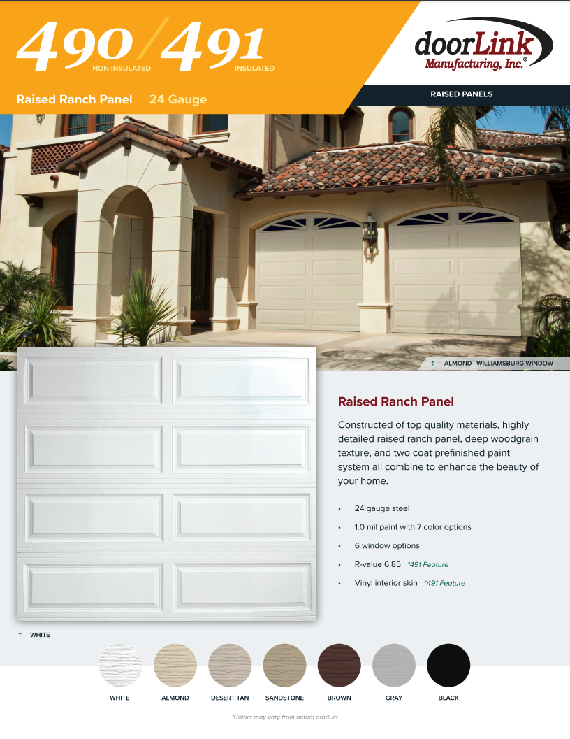 Constructed of top quality materials, highly detailed raised panel, deep woodgrain texture and two coat prefinished paint system all combine to enhance the beauty of your home.