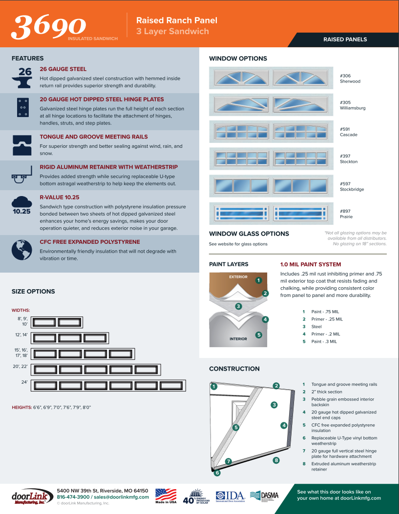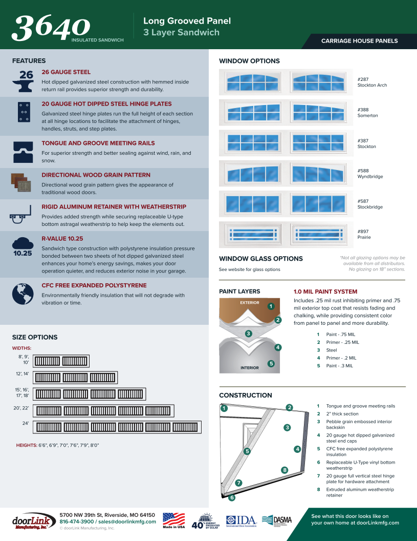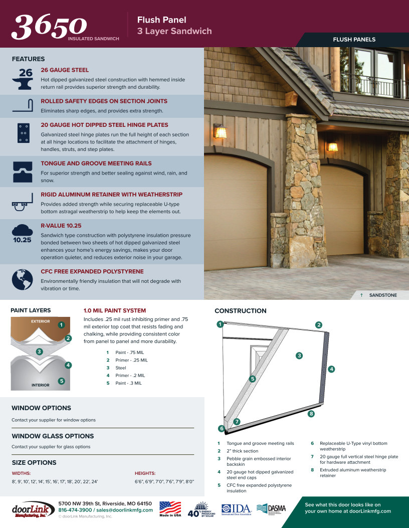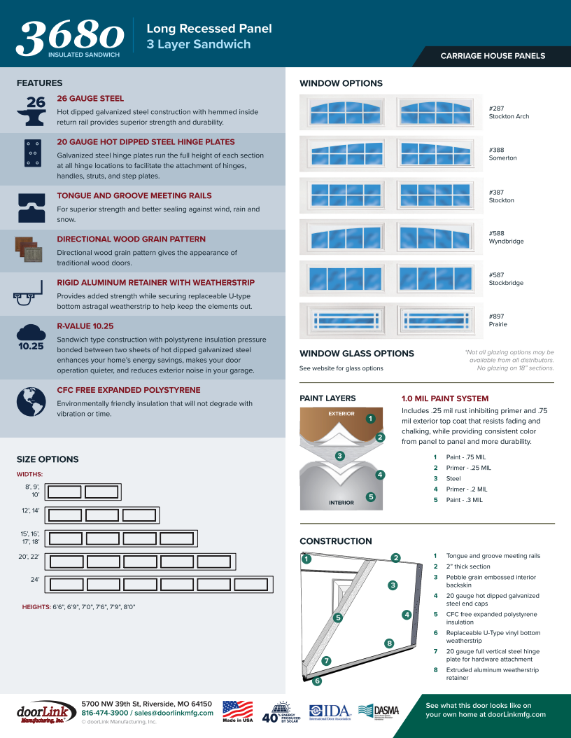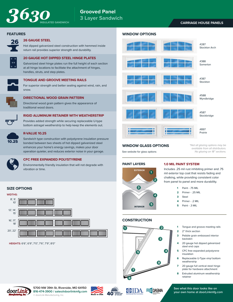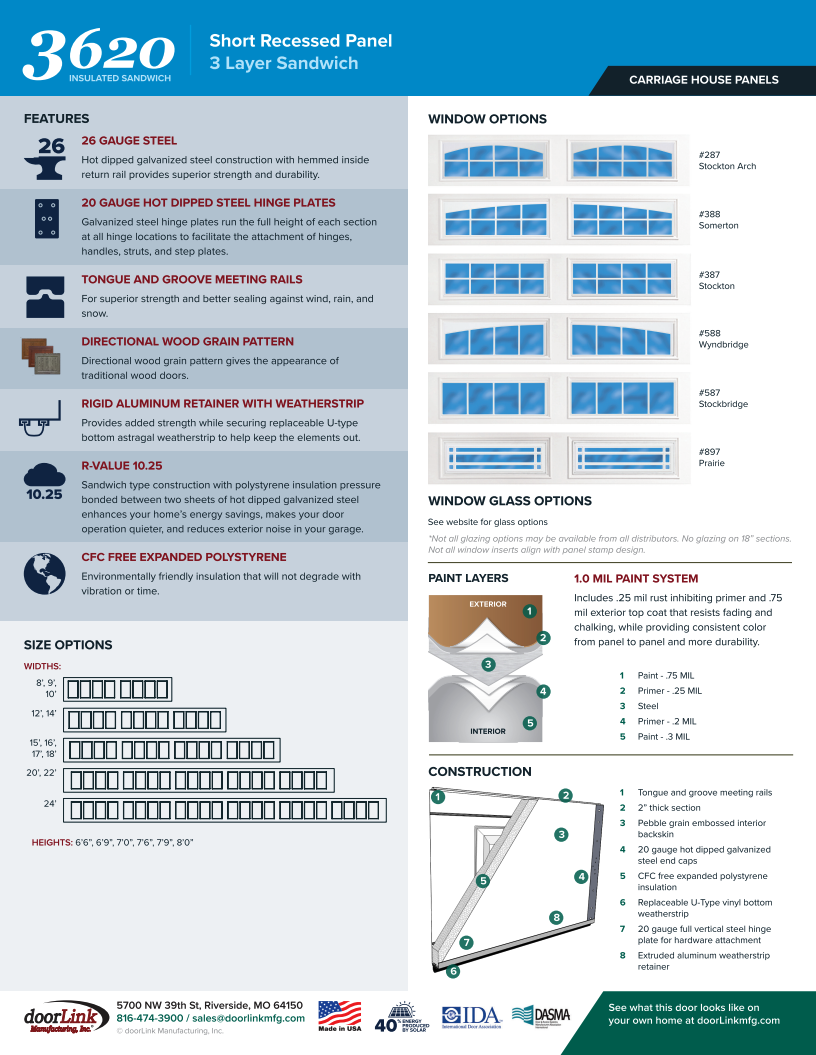 2″ thick insulated steel sandwich panel constructed of top quality materials. Ozark Series offers a deep woodgrain texture and two coat prefinished paint system all combined to enhance the beauty of your home.