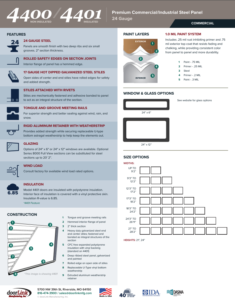 Galvanized steel hinge plates run the full height of each section at all hinge lacations to facilitate the attachment al hinges, handles, struts, and step plates.
