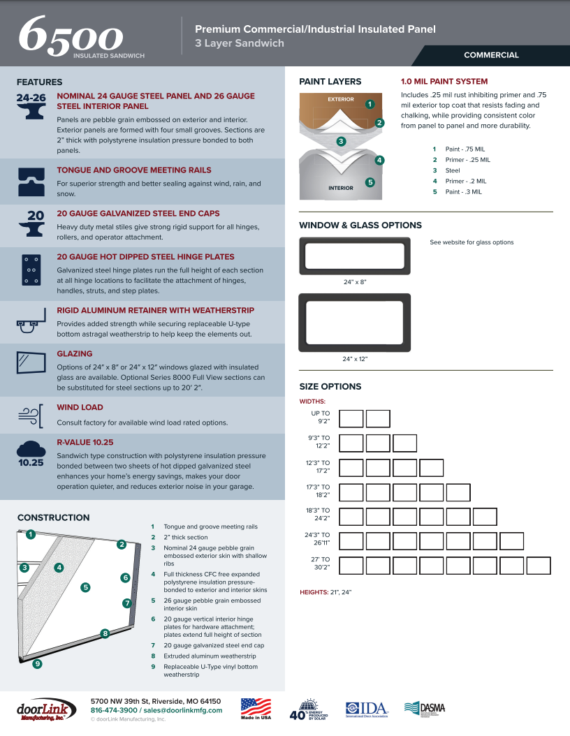 Sandwich type construction, with polystyrene insulation pressure bonded between two sheets of hat dipped galvanized steel enhances your Sense’s energy savings, makes your door operation quieter, and reduces exterior noise in your garage.