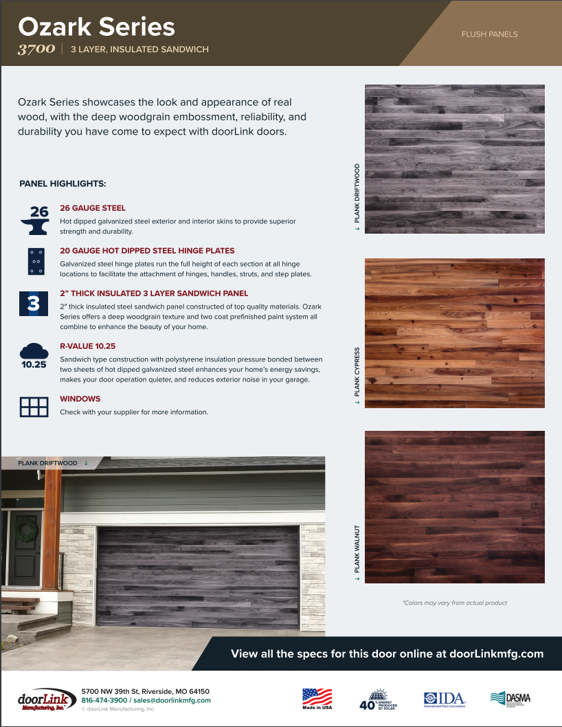 Ozark Series showcases the look and appearance of real wood, with the deep woodgrain embossment, reliability, and durability you have come to expect with doorLink doors.